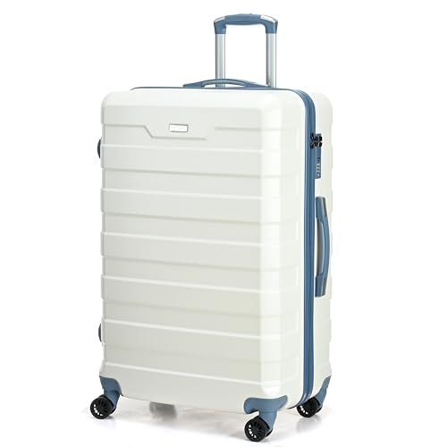 CMY Suitcase Large Lightweight Hard Shell ABS Large Suitcase 4 Dual Spinner Wheels Hold Check in Luggage 3 Digit TSA Combination Lock (White)
