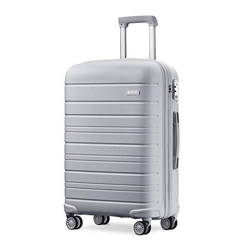 Kono Lightweight Polypropylene Large Check in Luggage with Spinner Wheels TSA Lock YKK Zipper Hard Shell Travel Trolley Suitcase (Grey,76cm 100L)