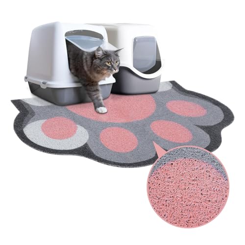 Cat Litter Mat Litter Trapping Mat, 40 x 60 cm Cat Litter Tray Mat, Non-slip Cat Mat for Litter Tray and Pet Food Bowl, Cute Litter Box Mat for Kitty Dog Small Animals, Easy to Clean Large (Grey+Pink)
