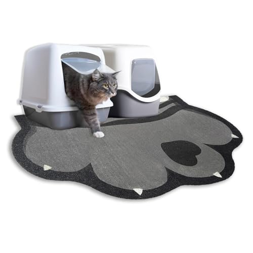 Cat Litter Mat Litter Trapping Mat, 90 x 60 cm Cat Litter Tray Mat, Non-slip Cat Mat for Litter Tray and Pet Food Bowl, Cute Litter Box Mat for Kitty Dog Small Animals, Easy to Clean Large (Grey)