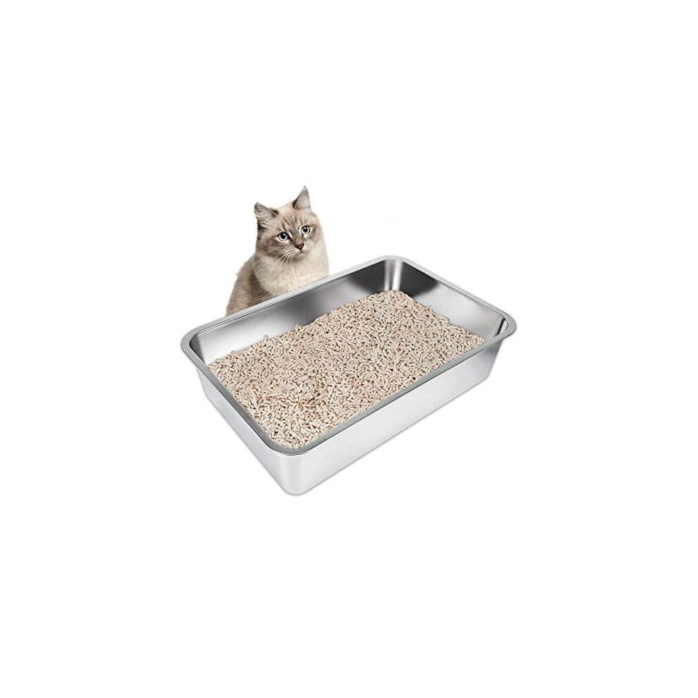 Stainless Steel Cat Litter Box, Large Metal Litter Tray for Cats Rabbits, Never Absorb Odors, Stain Free, Rustproof, Non Stick Smooth Surface,