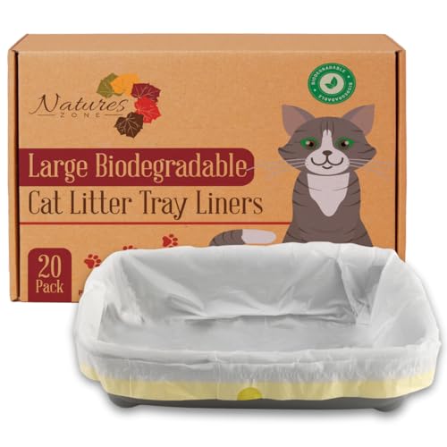Nature’s Zone Large Cat Litter Tray Liners – Biodegradable Drawstring Bags 20 Pack – Large 90×45cm – Strong, Tear-Resistant HDPE + EPI – Easy Clean Litter Box Liners