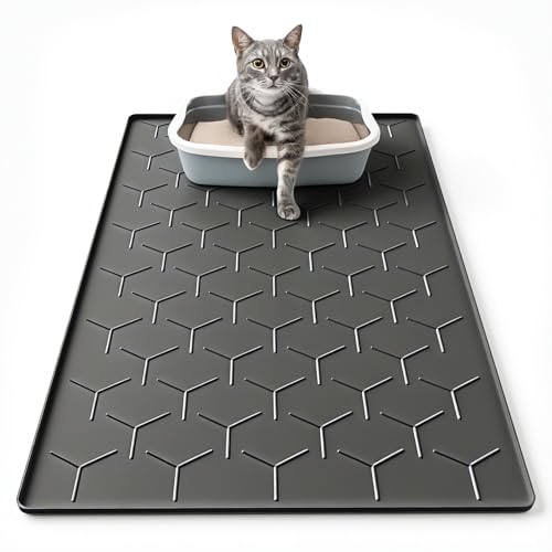 Garoopion Cat Litter Mat, Large 86x56cm Litter Tray Mat, Waterproof Silicone Pad, Easy to Clean, Black