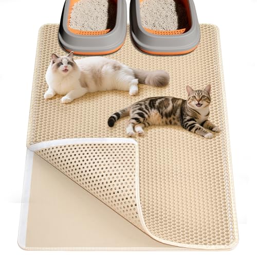 Ycozy Cat Litter Mat 90 X 60 cm Large Litter Trapping Mat Double Layer Waterproof Cat Litter Tray Mat Honeycomb Holes Design Cat Mat Non-Toxic Nonslip Beige