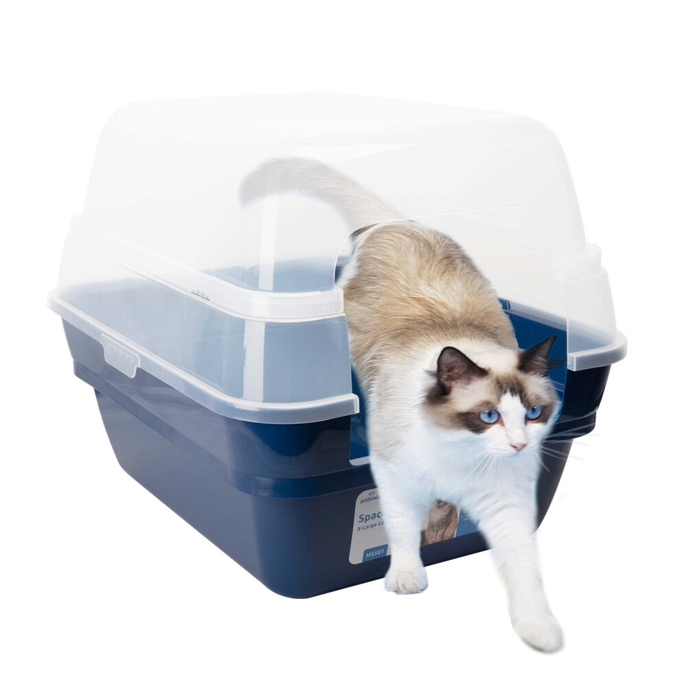 petfamily 3in1 large cat litter tray box hood lid Navy pan, kitten starter litter tray XL large Plastic tray cat Toilet, sturdy and easy to clean,