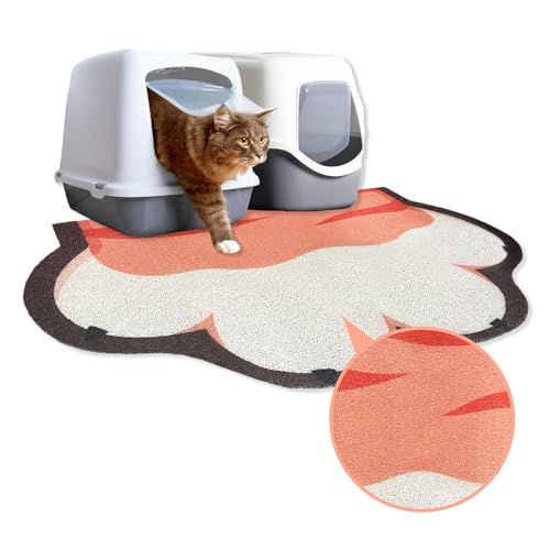 Cat Litter Mat Litter Trapping Mat, 90 x 60 cm Cat Litter Tray Mat, Non-slip Cat Mat for Litter Tray and Pet Food Bowl, Cute Litter Box Mat for Kitty Dog Small Animals, Easy to Clean Large (Orange)