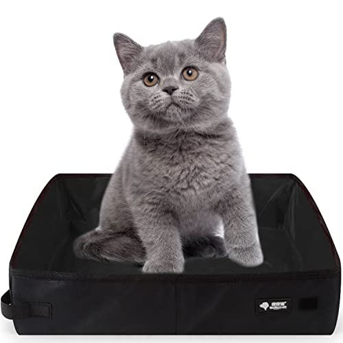Portable Cat Travel Litter Tray, XXL Foldable Travel Cat Litter Box 50 x 40 cm, Large, Waterproof, Easy to Clean for Kitten Indoor Outdoor Camping Car Travel Toilet, Black
