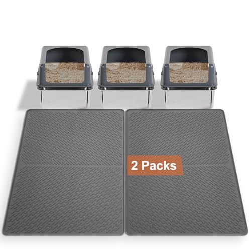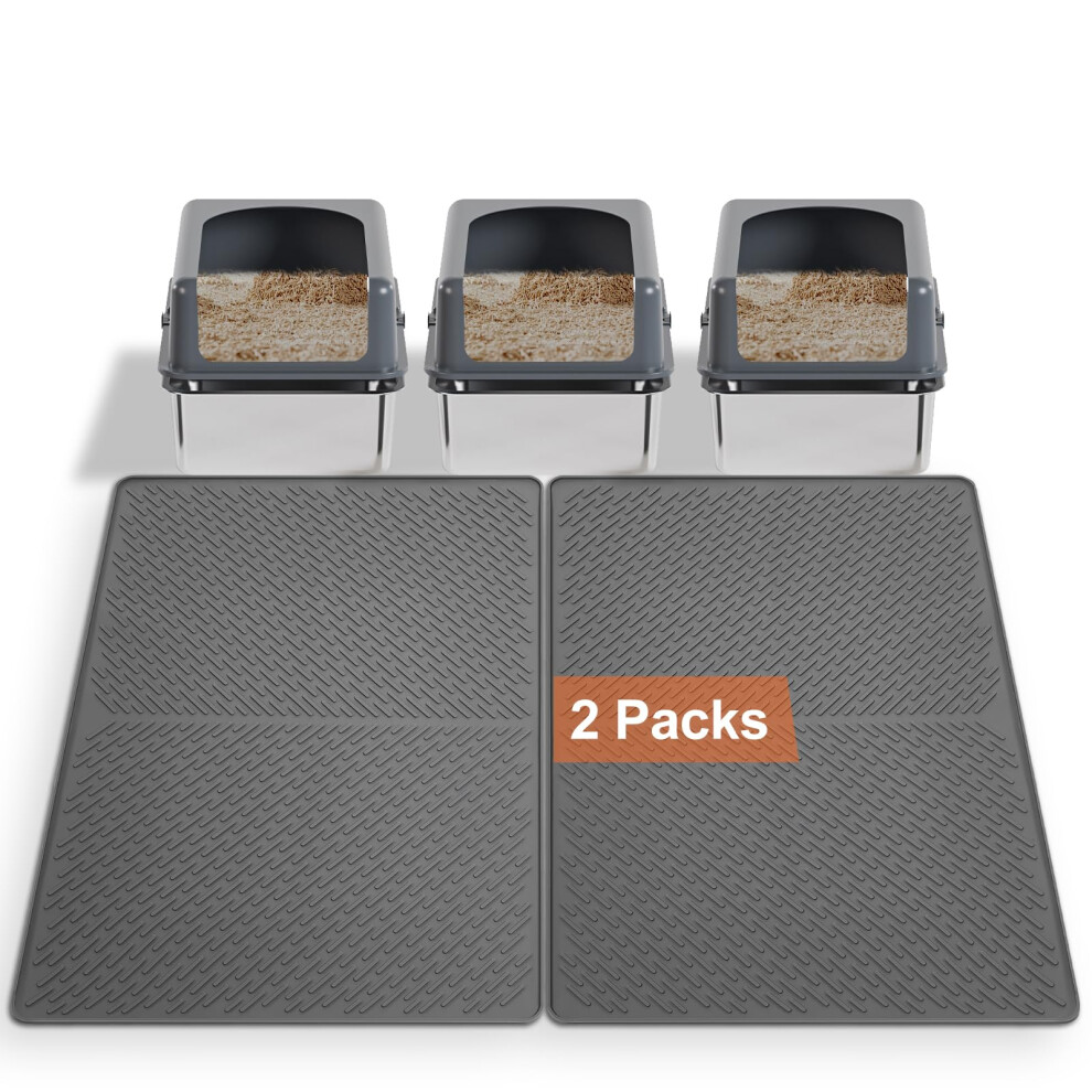 Odoland 2PCS Cat Litter Mat, 71 * 51cm Large Litter Tray Mat Scatter Control Silicone Waterproof Pet Litter Tray Mat Durable Cat Mat for Litter Tray - Grey