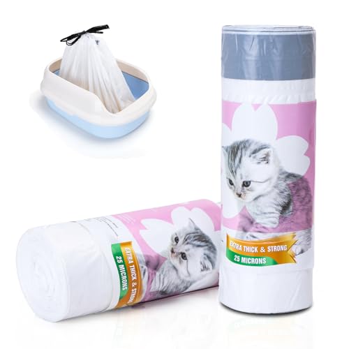 Pettiny 20 Cat Litter Tray Liners with Drawstrings Scratch Resistant Bags for Medium and Large Litter Box