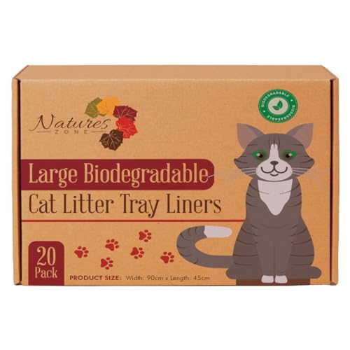 Natures Zone Cat Litter Tray Liners XL 20 Pack | Biodegradable Extra Large Litter Bags with Drawstrings | Helps Reduce Odours and Makes Cleaning Easy 100cm x 45cm