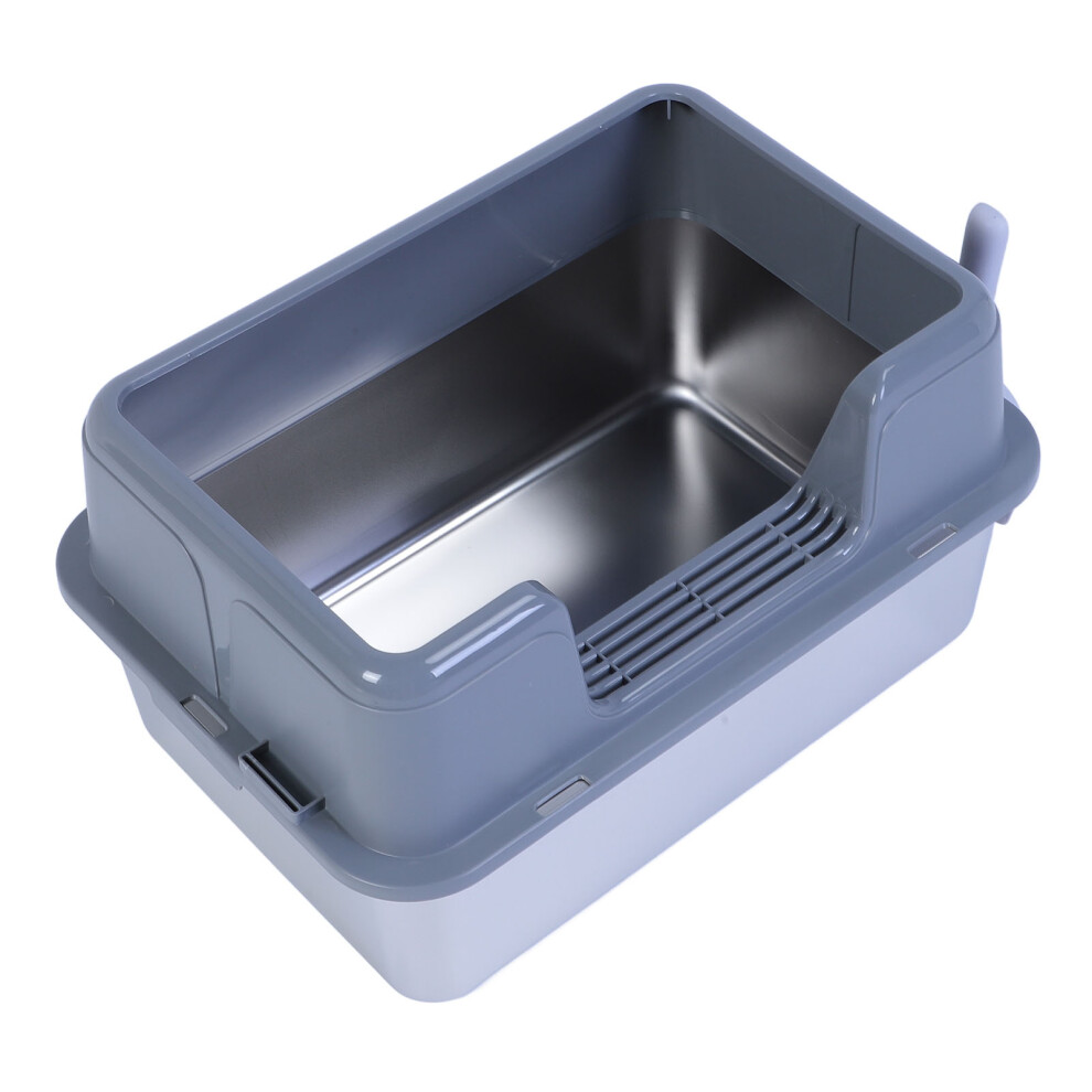 Stainless Steel Cat Litter Tray, Large Litter Tray with High Detachable Enclosure, Metal Litter Box with Litter Scoop for All Cats, Leak-Proof, Easy to Clean, 50(L) x35(W) x 25(H) cm
