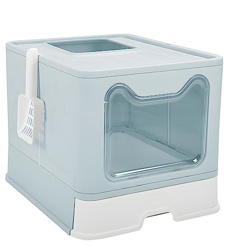 The Fellie Large Cat Litter Tray, Hooded Cat Litter Box with Drawer Pan and Scoop, Odor Control Easy Clean Litter Box, Blue, 51 x 41 x 38 cm