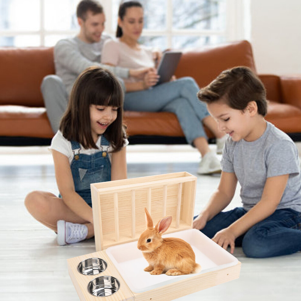 Spacious Bunny Hay Feeder with Large Bowls and Litter Tray