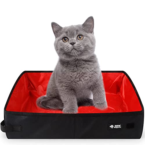 Portable Cat Travel Litter Tray, XXL Foldable Travel Cat Litter Box 50 x 40 cm, Large, Waterproof, Easy to Clean for Kitten Indoor Outdoor Camping Car Travel Toilet, Red