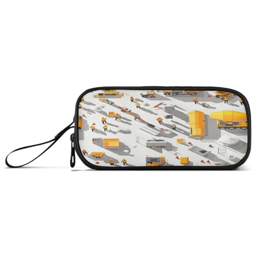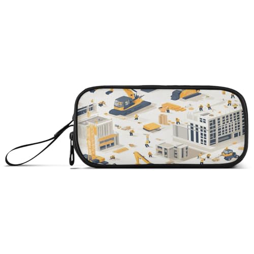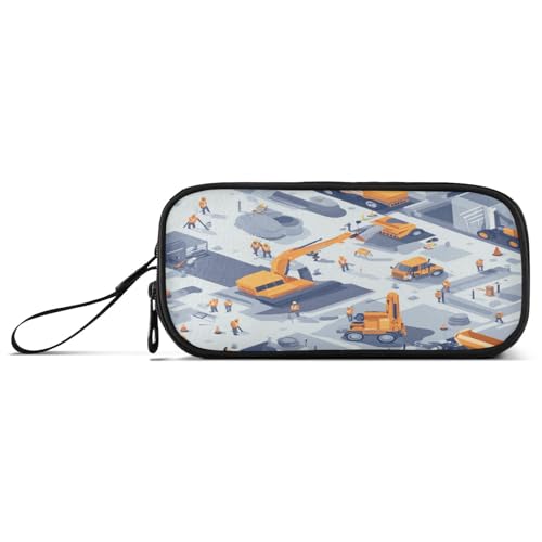 Large Capacity Pencil Case Holder Teens Large Pencil Bag School Must Haves with Handle Construction Scene Concrete Mixer Truck Bulldozer