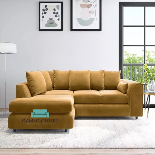 Exclusive Left-Hand Corner Durable Scattered Back Sofa Plush Velvet Comfy Indoor Outdoor Luxurious Furniture with Lavish Cushions for Large & Contemporary Living Room(Mustard Yellow, Left Hand Corner)