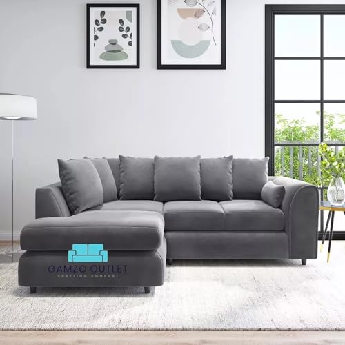 Exclusive Left-Hand Corner Durable Scattered Back Sofa Plush Velvet Comfy Indoor Outdoor Luxurious Furniture with Lavish Cushions for Large & Contemporary Living Room (Dark Grey, Left Hand Corner)