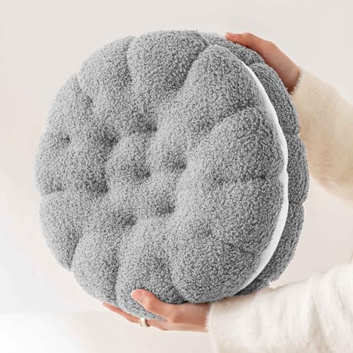 Round Large Pillows Seating,Meditation Floor Pillow,Indoor and Outdoor Cushion Yoga Pad,Tufted Accents Floor Cushions for Living Room Tatami(Grey,40 * 40cm)