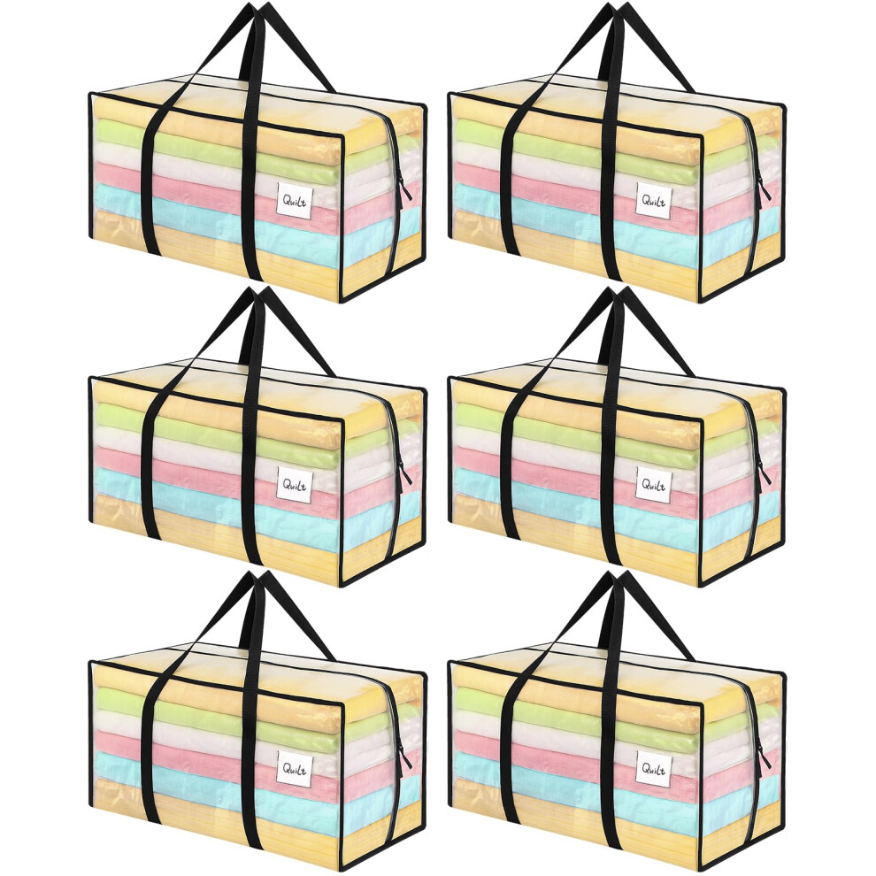 VENO 4 Pack 105L Large Storage Bags, Duvet Storage Bag King Size for Moving, Underbed Storage Bags for Bedding, Laundry Packing Boxes Clothes, Duvets, Pillows, Quilt, Blankets (Clear, 4 Pack 105L)