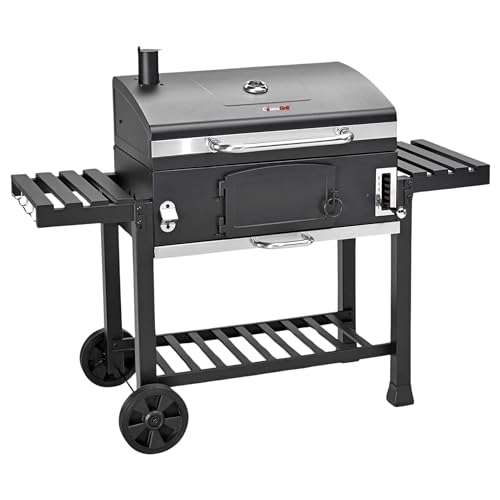 CosmoGrill Outdoor XXL Smoker Barbecue Charcoal Portable BBQ Grill | Lid Cover, Adjustable Charcoal Pan, Warming Rack & Built-in Thermometer | Extra Large Coal BBQ Smoker for Home Garden Party Cooking