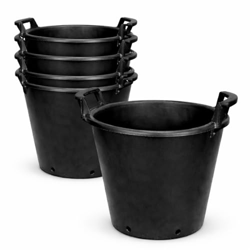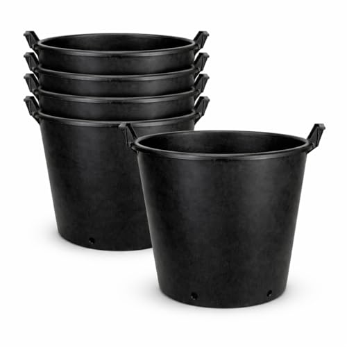 Muddy Hands Pack of 5-35 Litre Black Plastic Plant Pots with Handles - Heavy Duty Large Garden Container Planters with Drainage Holes, Outdoor Flower Tree Shrub Pots