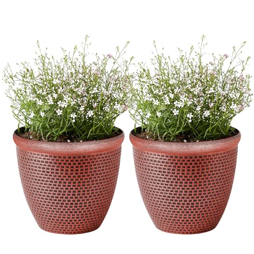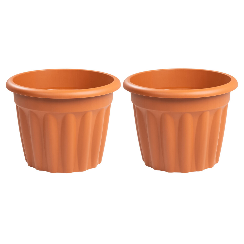 Pack of 2 Large Plastic Planters 40cm Round 20L with Drainage Hole Weather Resistant Terracotta