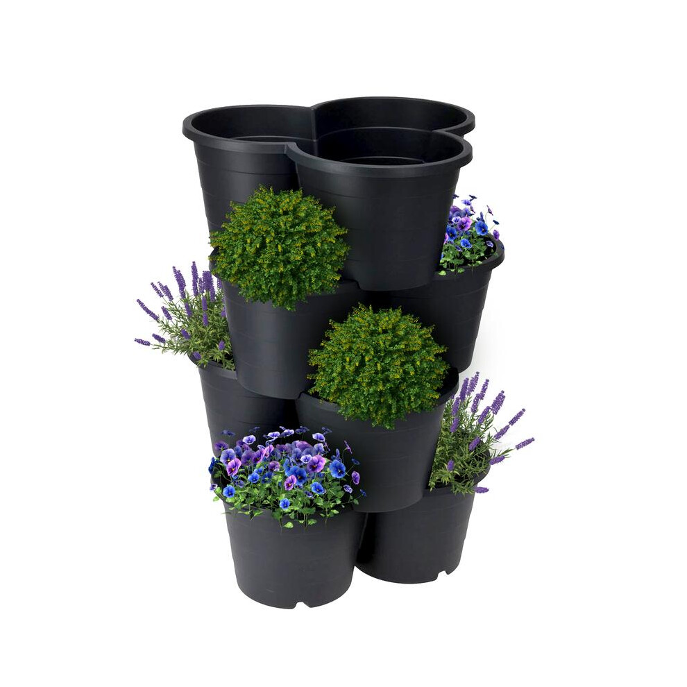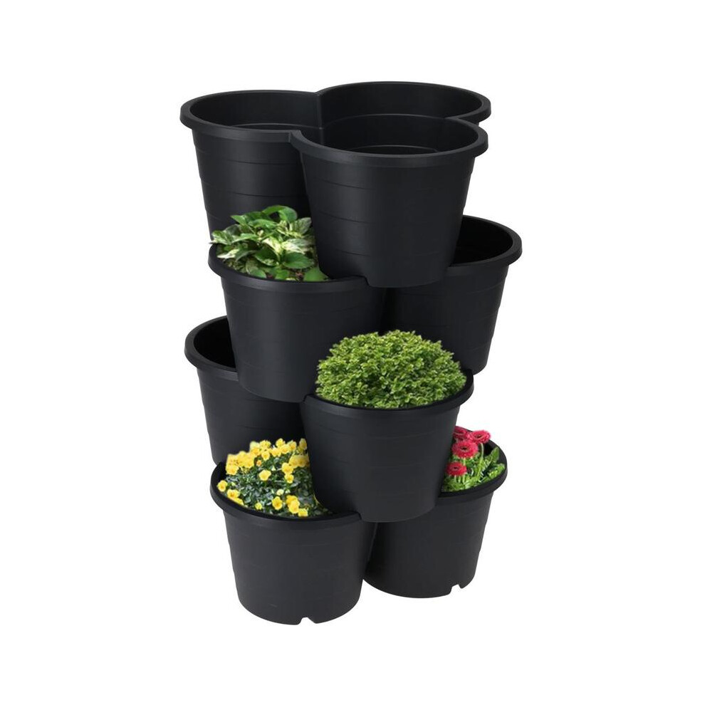 (Default) GEEZY Stackable Flower Pot Planters â Set of 4, Large Black Plastic Tiered Design for Outdoor Vertical Garden, for Herbs, Strawberries,