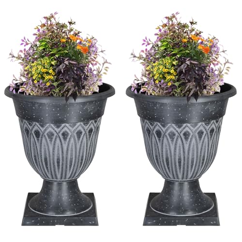 SG Traders Large Urn Plant Pot Stand, Flower Pots Outdoor Garden Planters, Indoor Plant Pot, Tall Planter with Drainage Holes, Strong Plastic Patio Home Plants (Pack of 2)
