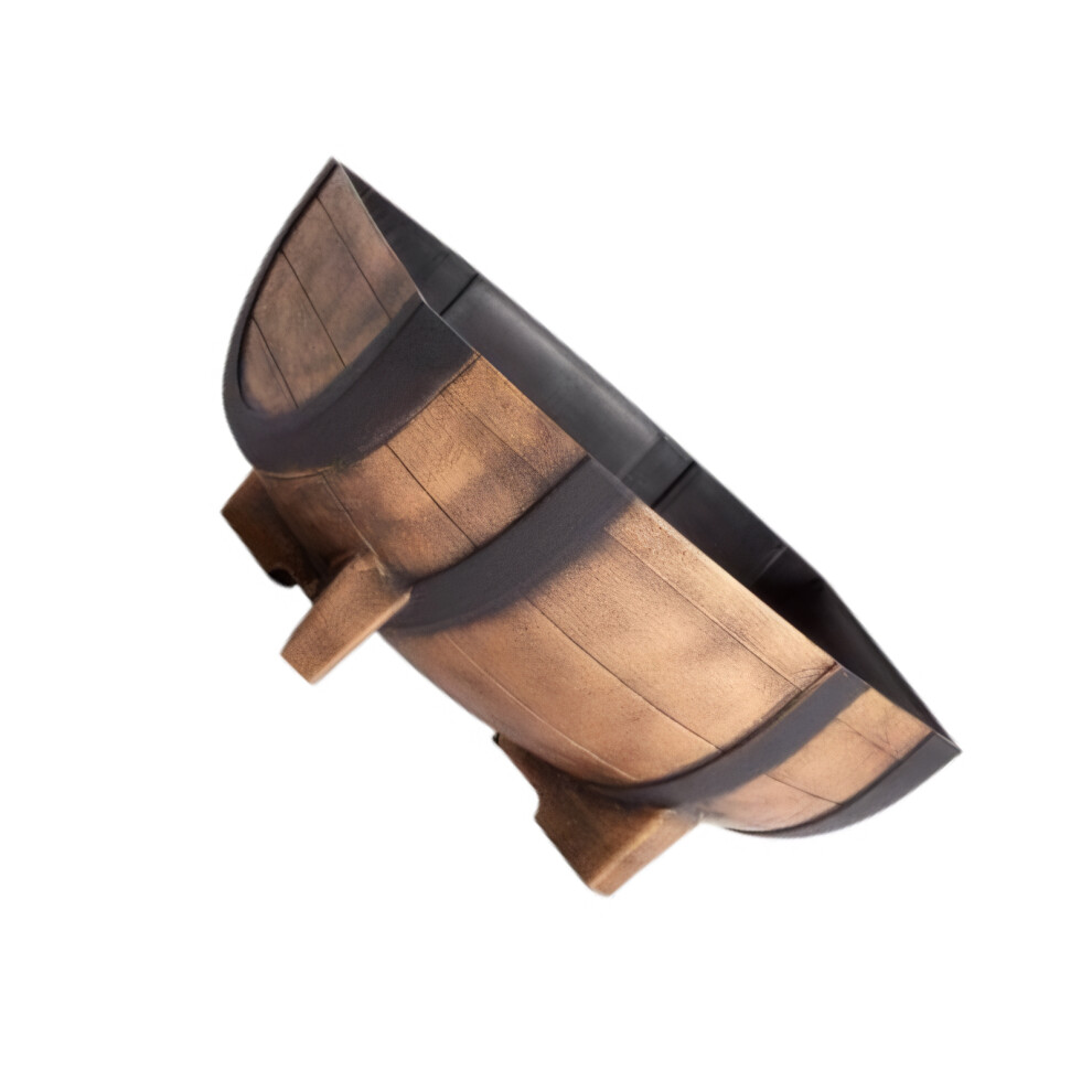 SG Traders Large Half Barrel Cask Planter, Flower Pots Outdoor Garden Planters, Indoor Plant Pot with Drainage Holes, Plastic, Tan with Black Straps, 40 x 24cm