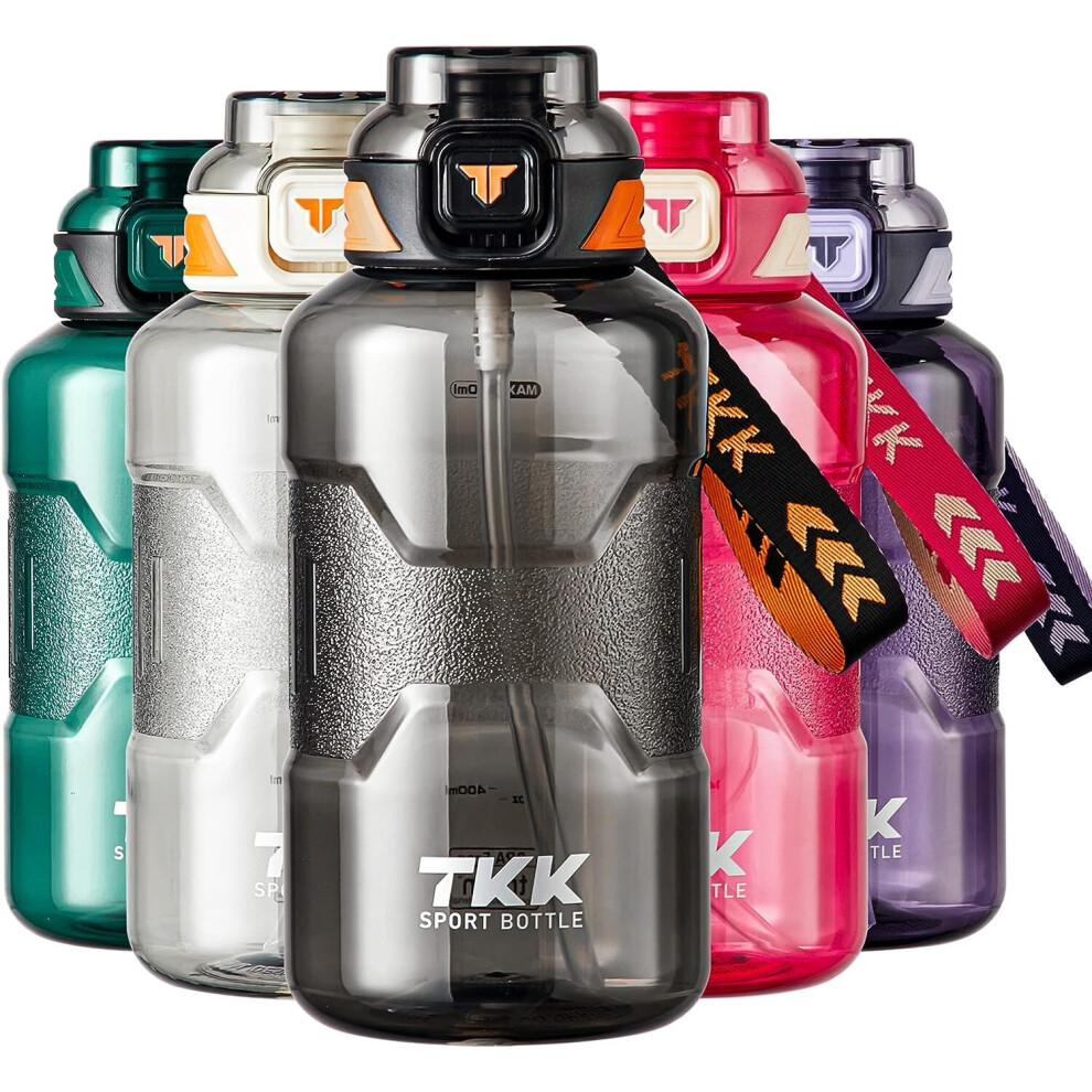 Black 2000ml Large Plastic Water Bottle With Straw