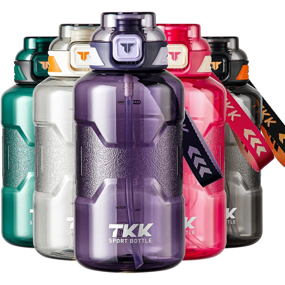 Purple 2000ML Large Capacity Plastic Water Bottle With Straw & Markings