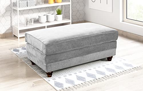 MK Sofas Modern Footstool | Large Square Ottoman Pouffe Rest | Silver Grey Upholstered Fabric | Drawing Room Bedroom Office Furniture