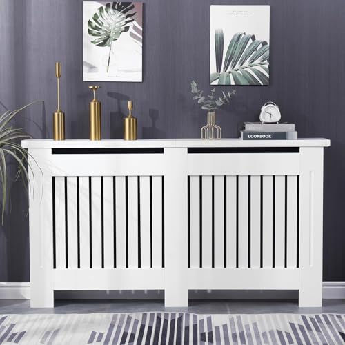 GCYEIDMA Large Radiator Cover Radiator Covers Modern Painted Vertical Slatted Grill Cabinet Shelf, MDF Wooden High Heating Living Room Furniture Hallway(L)