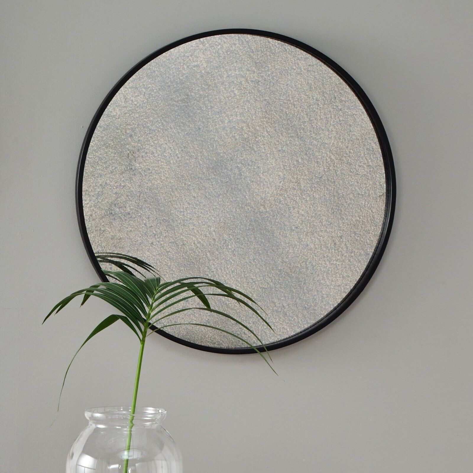 Black Round Wall Mirror Foxed Glass Large Modern Wall Mounted Framed Mirror