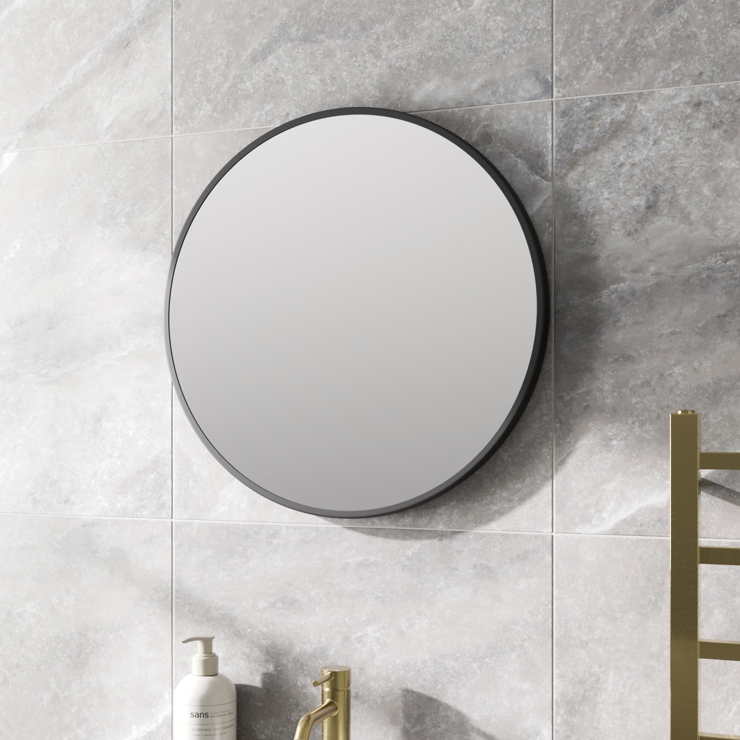 Large Modern Round Glass Mirror 60cm Black Frame Wall Mounted Bathroom Vanity