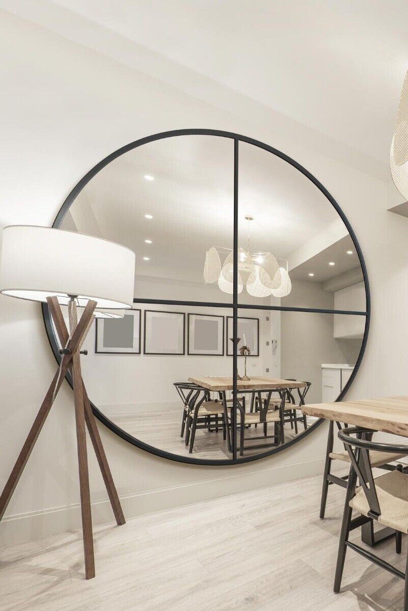 The Fenestra New Extra Large Black Round Window Wall Mirror 79"x79" 200x200cm