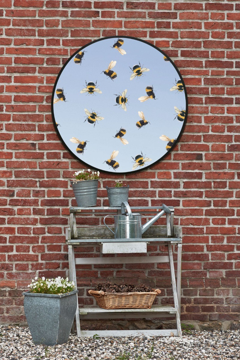 MirrorOutlet Large Black Round Bee Design Garden Mirror - 31" x 31" 80cm x 80cm
