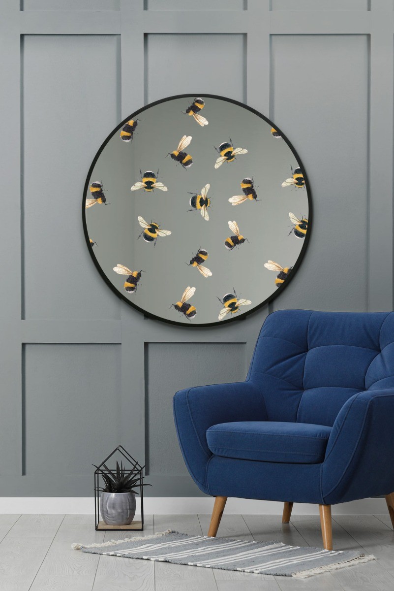 The Typis - Large Black Round Metal Bumble Bee Design Mirror - 31"x31" 80x80cm