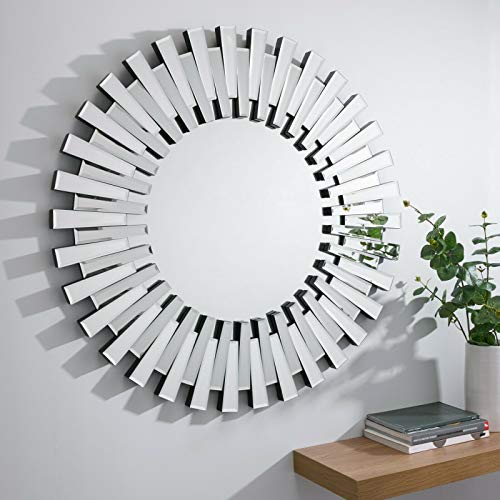 Furniturebox UK - Starburst Round Large Wall Mirror - Ideal For Living Room, Bedroom, Hallway - Contemporary Big Silver Circle (80x80cm)