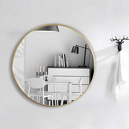 Warmiehomy Large Round Bathroom Mirror Wall Mounted Makeup Mirror with Aluminium Frame for Bathroom Living Room Bedroom (Φ80cm, Gold)
