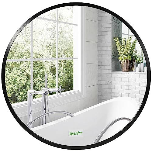 Warmiehomy Large Round Bathroom Mirror Wall Mounted Makeup Mirror with Aluminium Frame for Bathroom Living Room Bedroom (Black,Φ70cm)