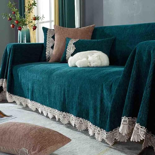 ZCXRYFL Soft Throws For Sofas Large Armchairs Settee L/U-Shaped Sofa Cover 1 2 3 4 Seater Couch Throw Blanket Chenille Sofa Cushion Slipcovers For Office Nap Camping(180X340cm,Green)