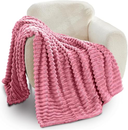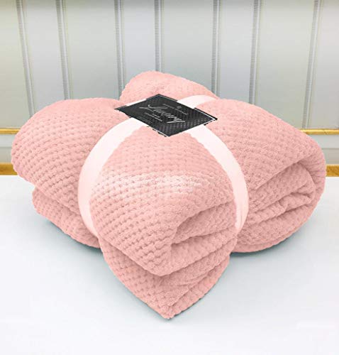 Super Soft Luxury Popcorn Textured Throws Fleece Blanket Sofa Bed Warm Large Settee (Pink, King :200Cm x 240Cm)