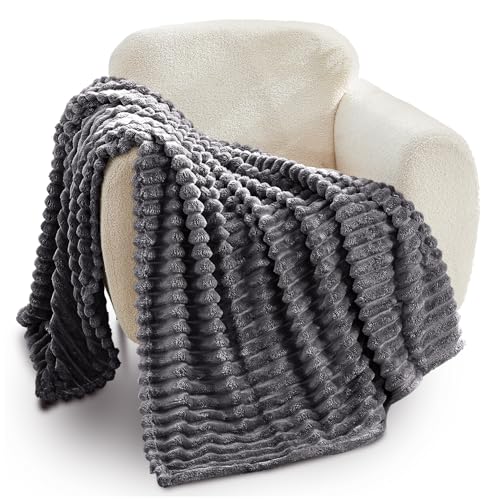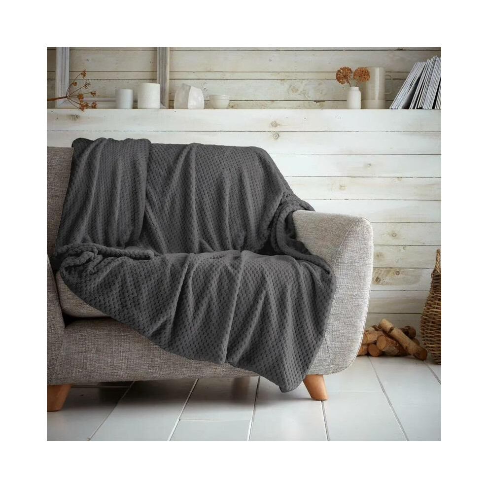FAIRWAYUK Waffle Honeycomb Throw Fleece Blankets, 100% Polyester Warm Faux Fur Throws Over Sofa Bed Settee Soft Blanket, Extra Large (Charcoal, Double Size 150x200cm)