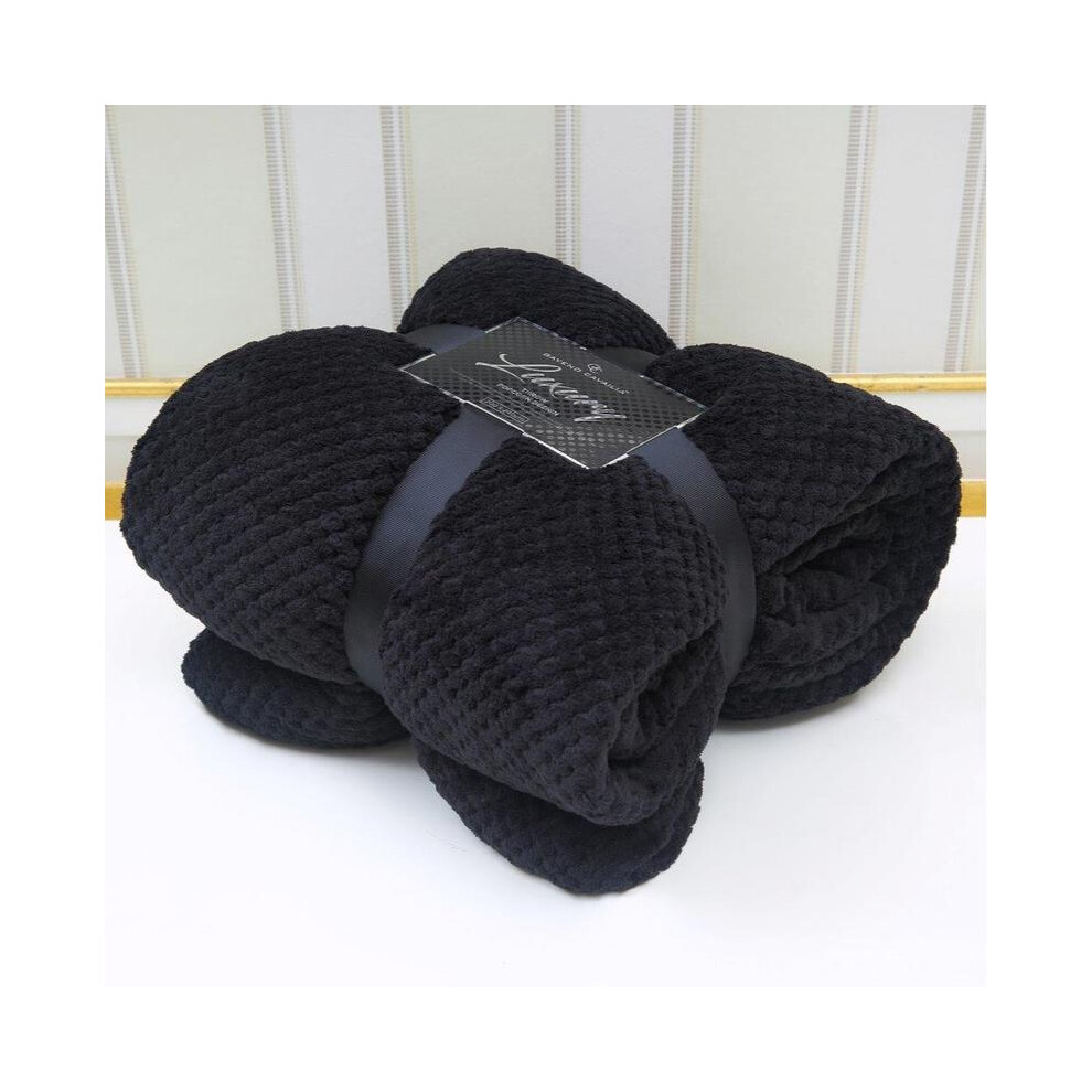Dreamscene Fleece Blanket Black Throw, Soft Cosy Warm Honeycomb Waffle Blanket for Bed Settee Faux Fur Throw Fluffy Throws for Sofas Large King Size Bed Throws, 200 x 240cm