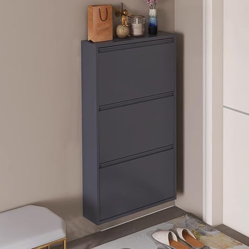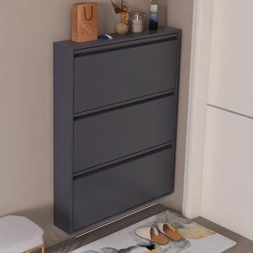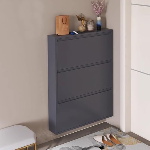 SUZEPER Wall Mounted Shoe Cabinet with Flip Drawers, Hidden Large Shoe Cabinet Storage for Entryway, Freestanding No Assembly Shoe Rack Shoe Organizer for Hallway Corridor(40.6x20x4.8in, Gray)