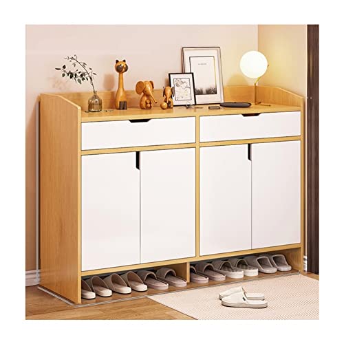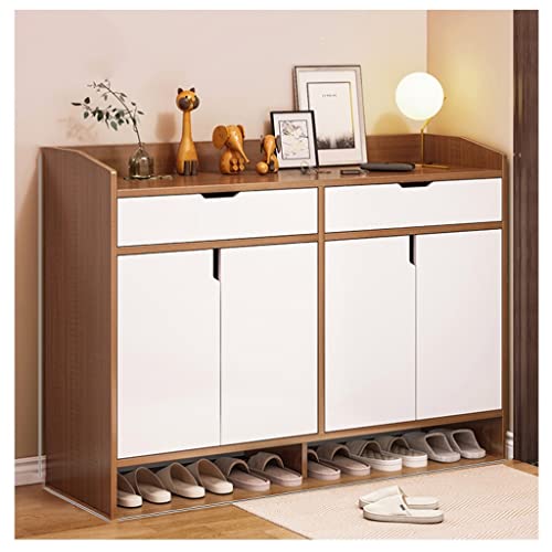 bleslin Shoe Racks Large Shoe Storage Organizer,2 Drawer Shoe Cabinet Cupboard Free Standing with 4 Doors Wooden Entryway Shoes Storage Storage Organizer(B,120)