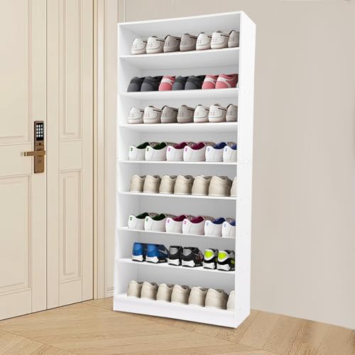 Open Design Shoe Rack Shoe Storage Cabinet, 8-Tiers Free Standing Shoes Shelf Organizer, Large Capacity Shoe Storage Cabinets for 32 Pairs, Shoes Cabinet for Closets Hallway Bedroom Entryway (White)