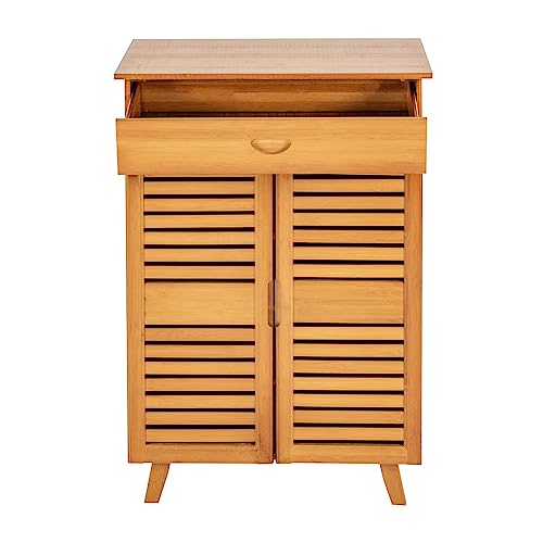 HOLMZCED 7 Tiers Bamboo Shoe Cabinet with Flip Doors, Free Standing Shoe Rack Cabinet with Large Capacity Shoe Storage Cabinet with Handles Shoe Rack Shelf for Entryway Living Room