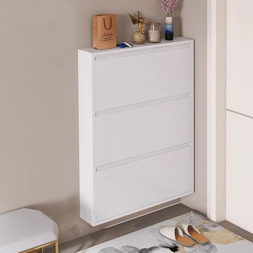SUZEPER Wall Mounted Shoe Cabinet with Flip Drawers, Hidden Large Shoe Cabinet Storage for Entryway, Freestanding No Assembly Shoe Rack Shoe Organizer for Hallway Corridor(40.6x20x4.8in, White)